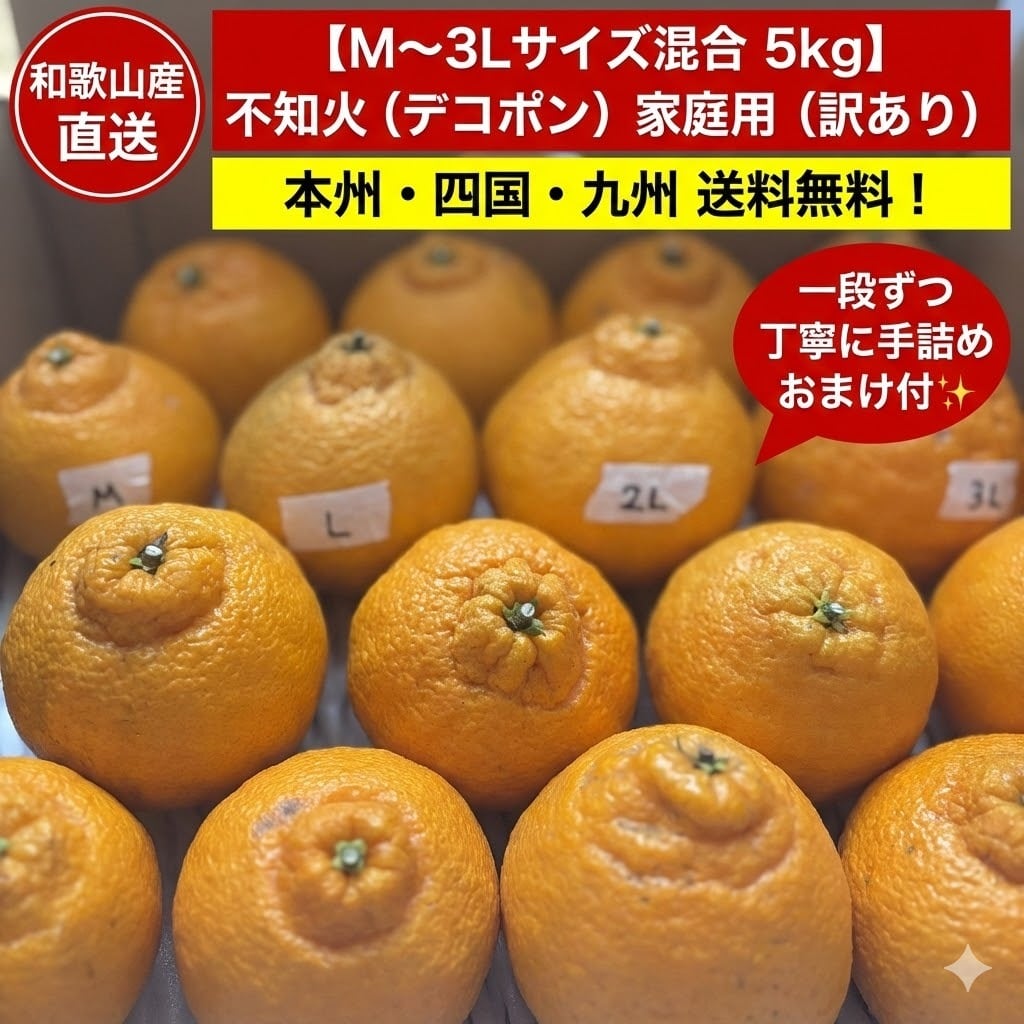 和歌山産 不知火(デコポン) たっぷり5kg M〜3Lサイズ混合 家庭用 おまけ付 一段詰め✨